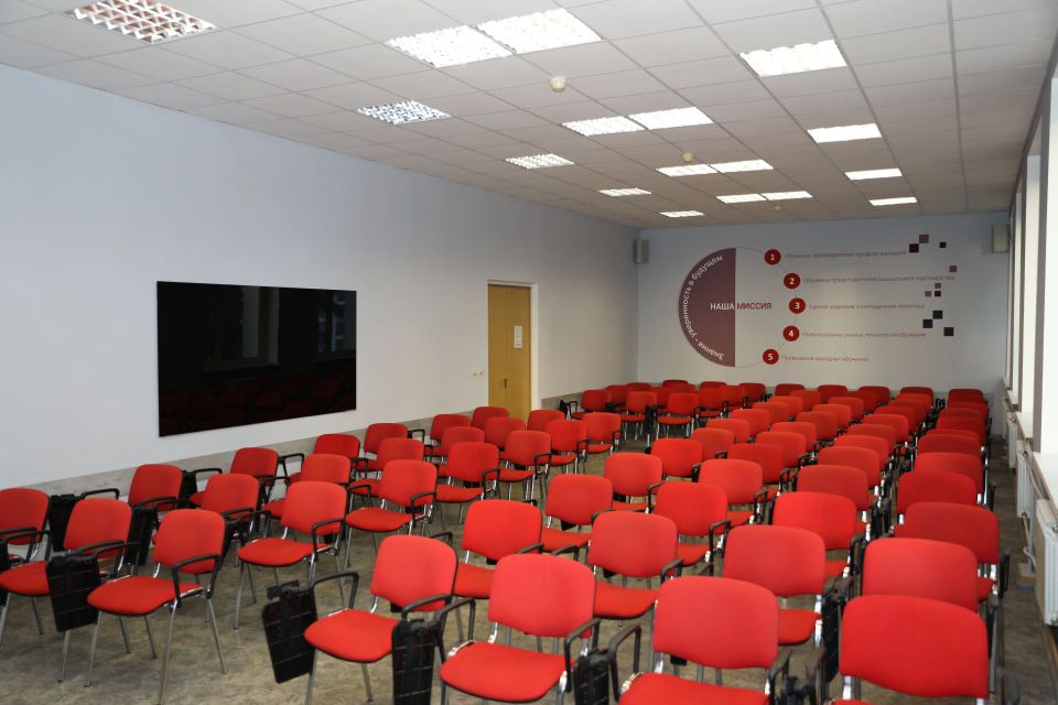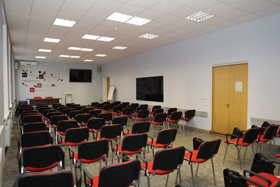 - В стоимость аренды зала входит, система звукоусиления, место для регистрации (1 стол, 2 стула), проводной микрофон, установка навигации, подключение оборудования.