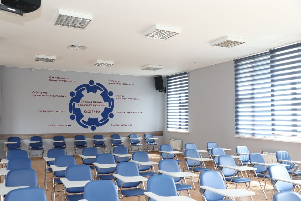 Зал прекрасно подойдет для проведения образовательных, информационных, тематических семинаров, тренингов. Интерьер данного зала выдержан в светлых тонах и позволяет проводить мероприятия с различными типами рассадки.